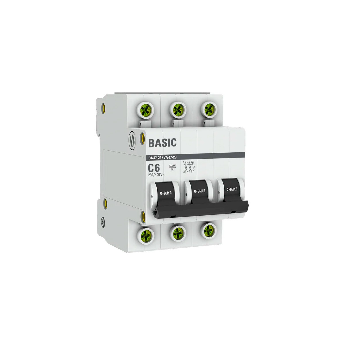 Автоматический выключатель 3P 6A (C) ВА47-29 4,5кА Basic EKF информация: