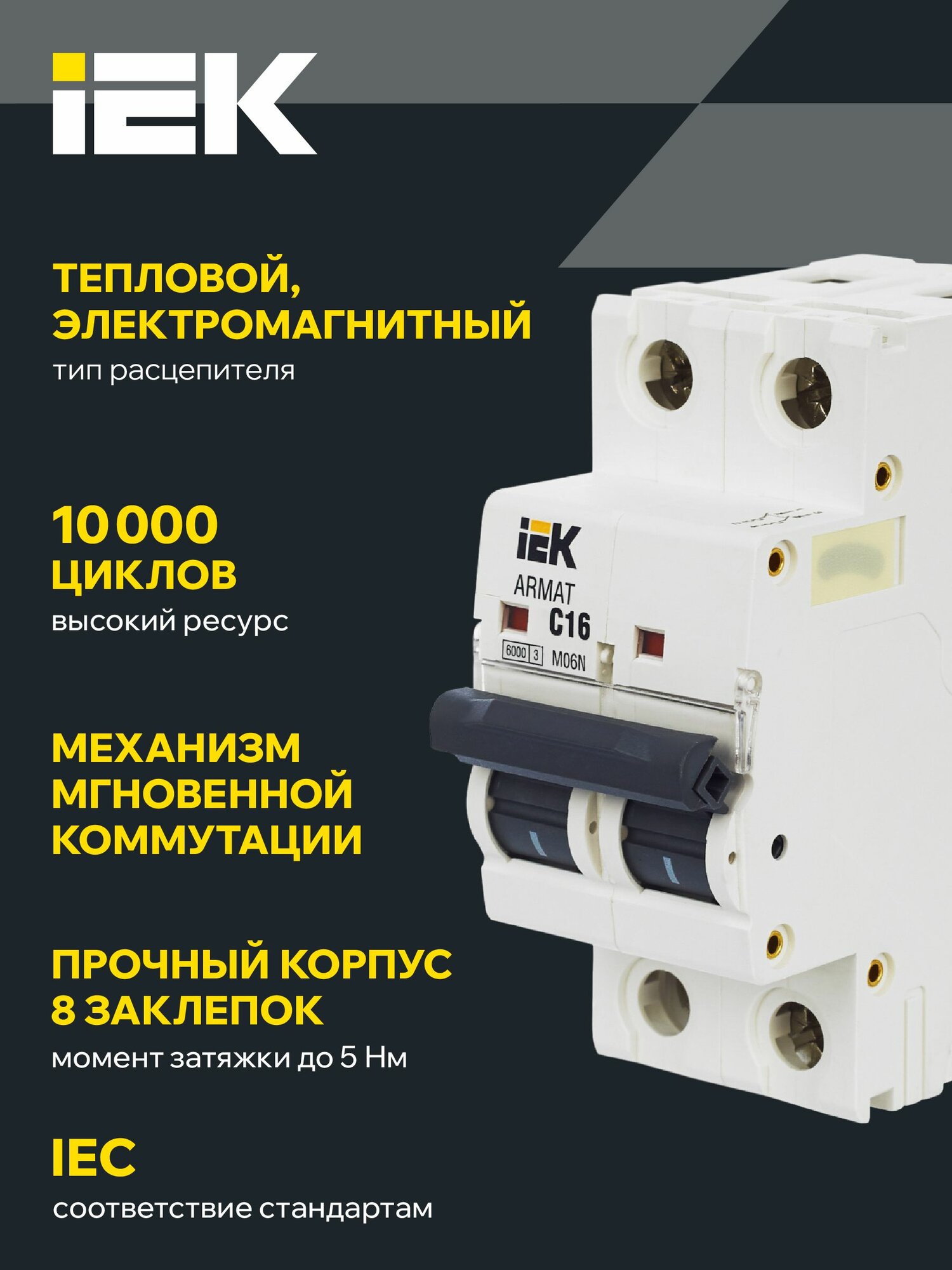 Автоматический выключатель M06N 2P 16А C IEK серия ARMAT информация: