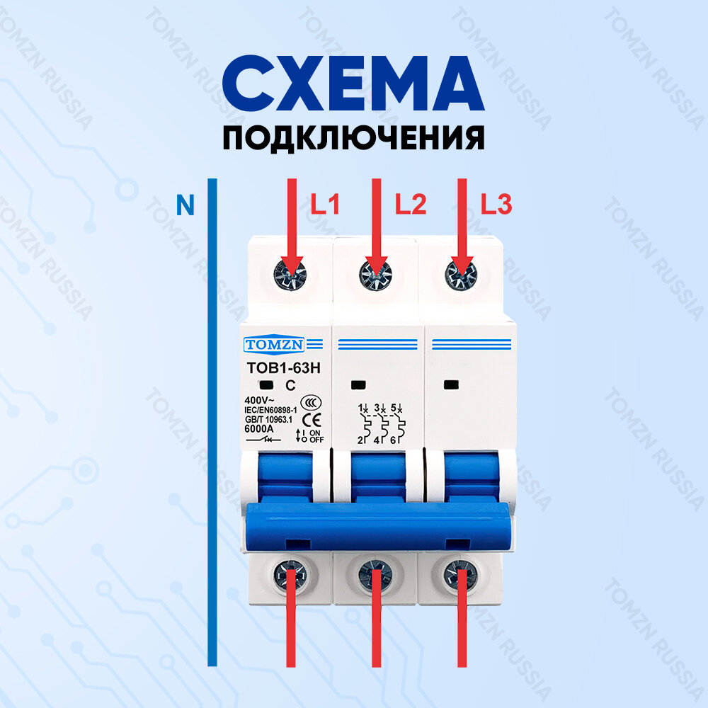 Автоматический выключатель TOMZN TOB1 3P 20А 6кА тип C информация:
