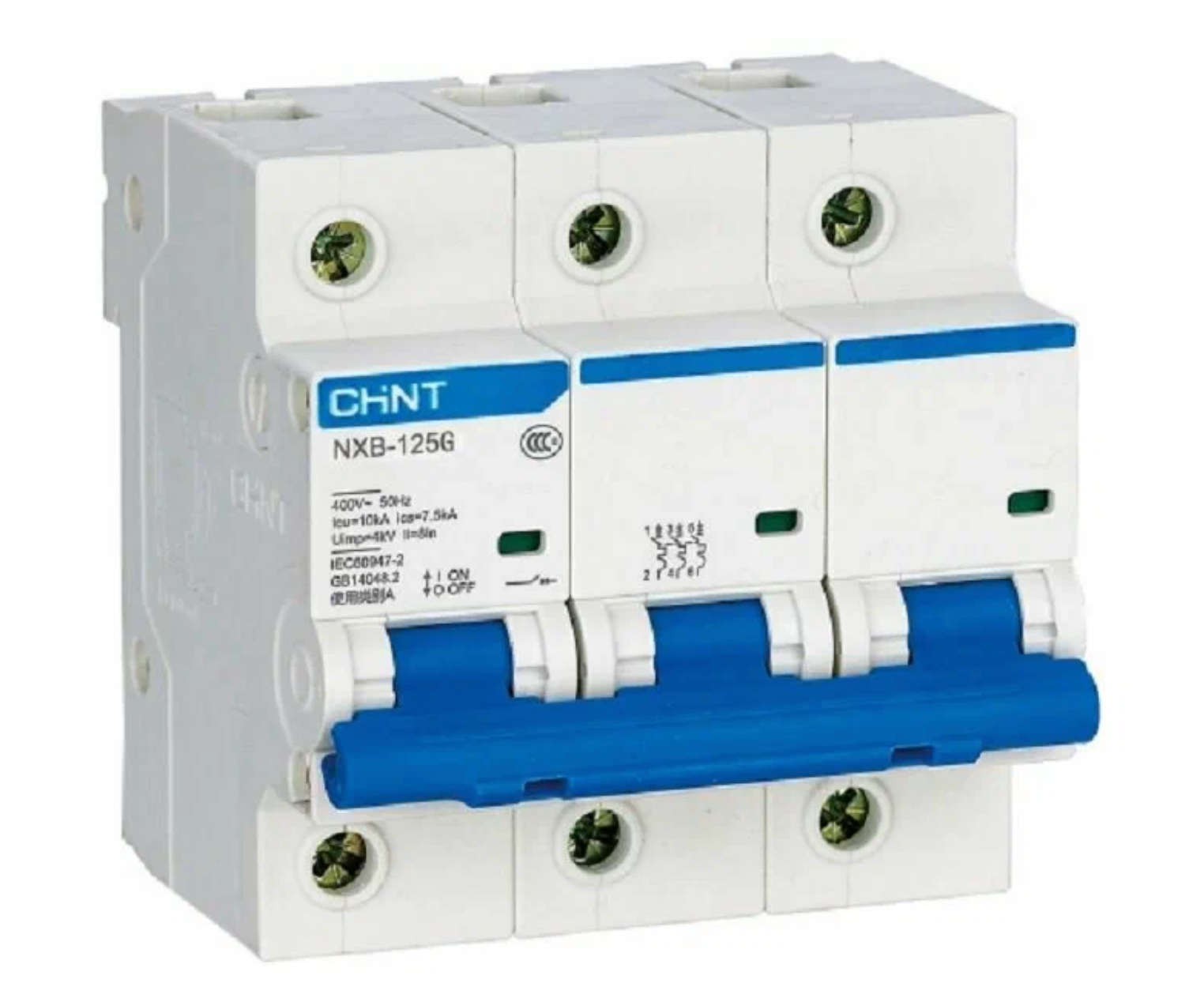 Автоматический выключатель CHINT NXB-125G 3P, C80 А, 10 кА трехполюсный информация: