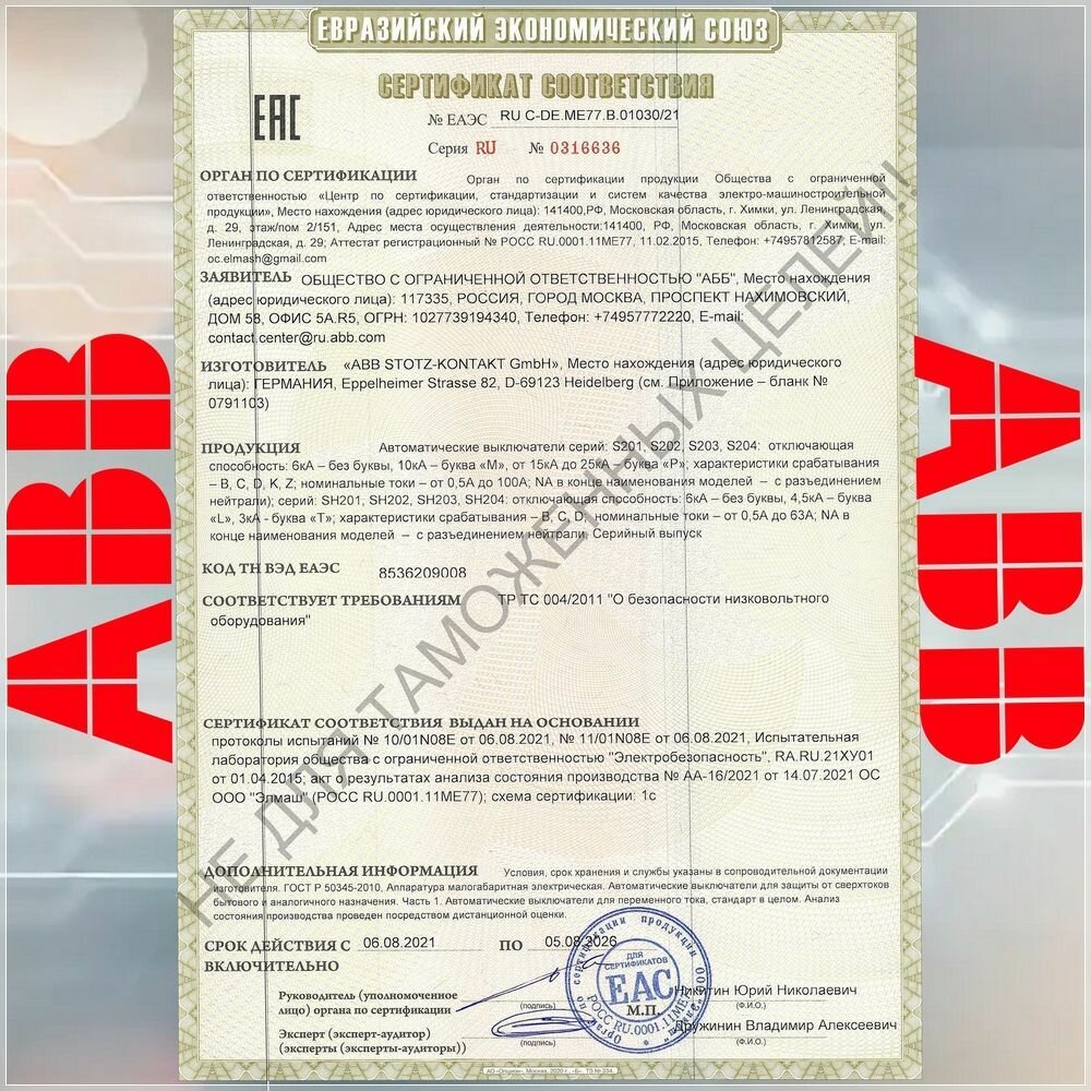 Автоматический выключатель ABB SH201L 10А 3P информация: