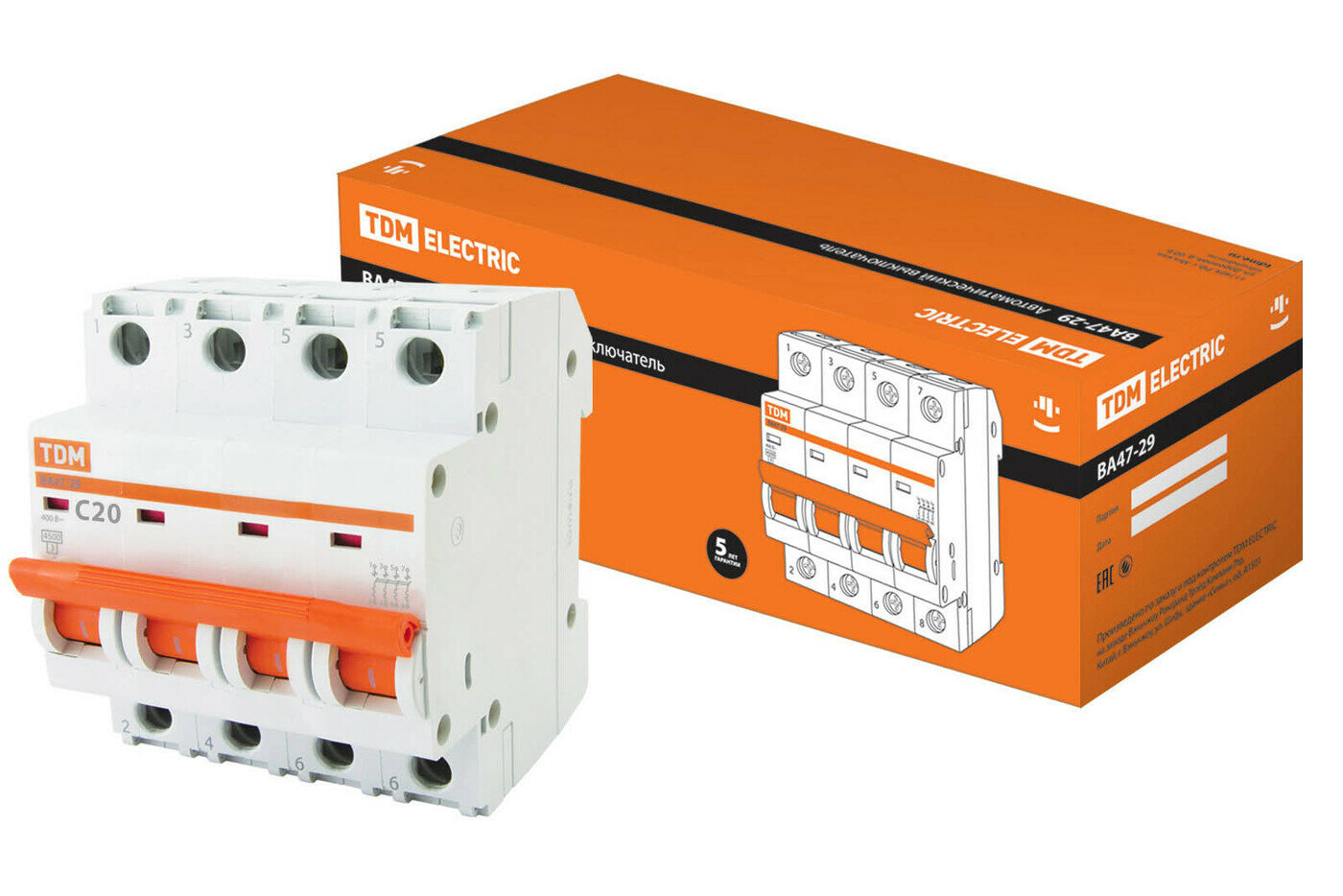 Автоматический выключатель ВА47-29 4Р 20А 4,5 кА тип С TDM Electric информация:
