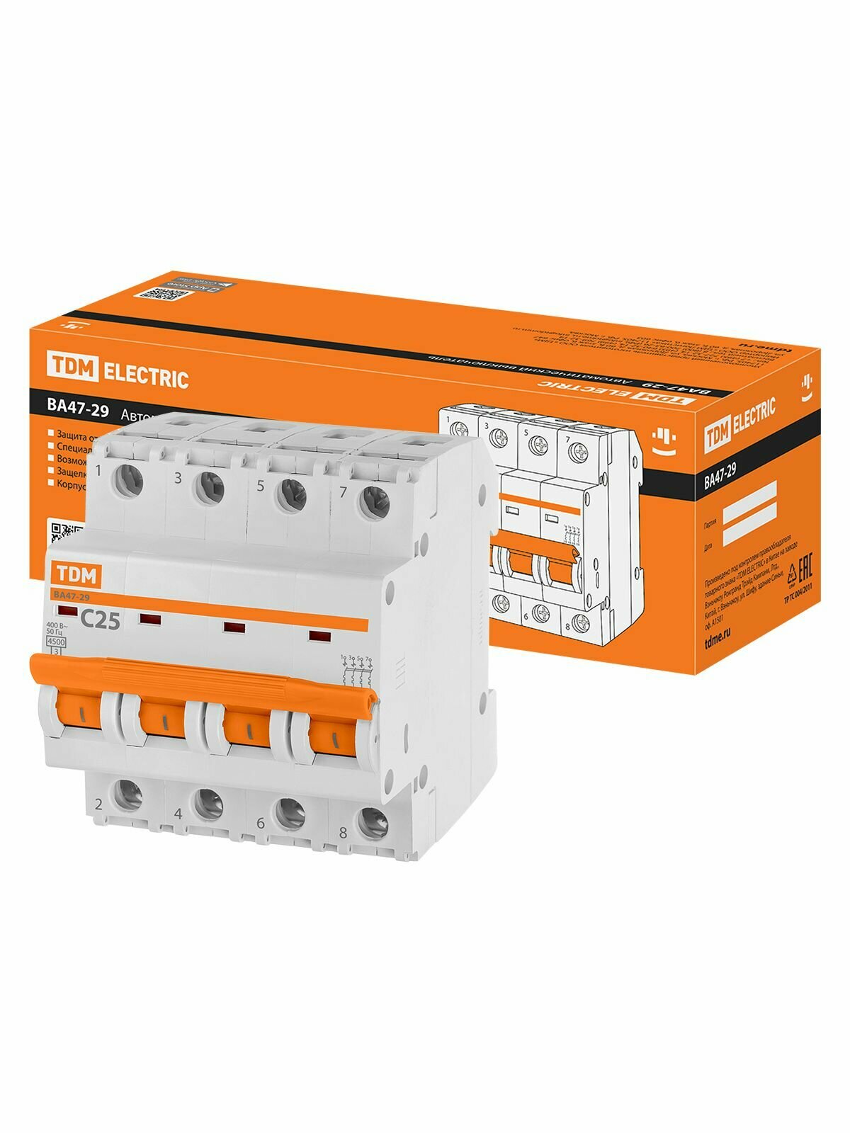 Автоматический выключатель ВА47-29 4Р 25А 4,5 кА тип С TDM Electric информация: