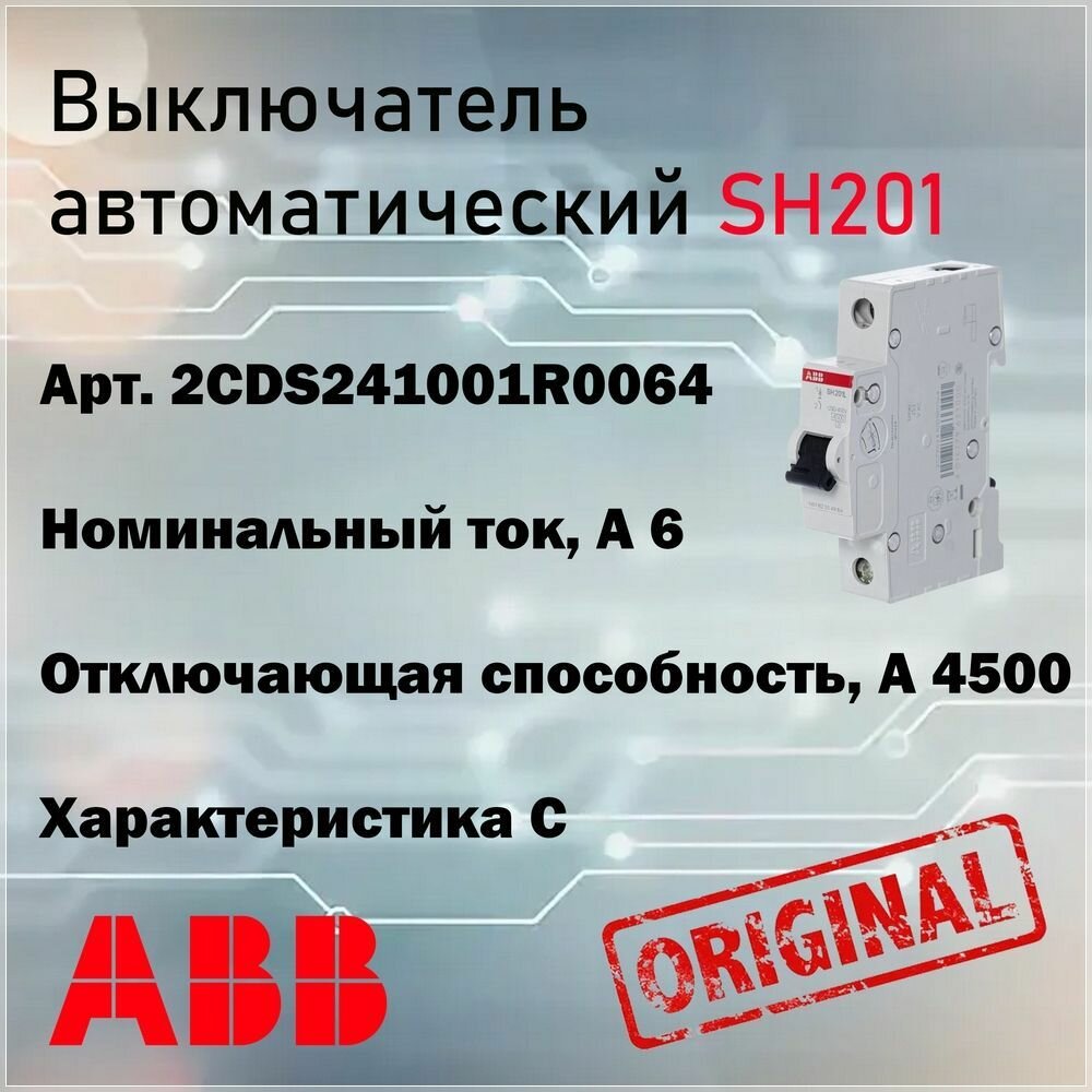 Автоматический выключатель ABB SH201L 1P 6А (C) 4,5kA информация: