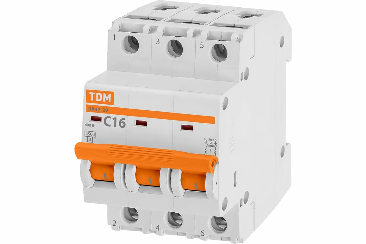 Отзывы на Авт. выкл. ВА47-29 3Р 16А 4,5кА х-ка С, TDM SQ0206-0109 (1 шт.)