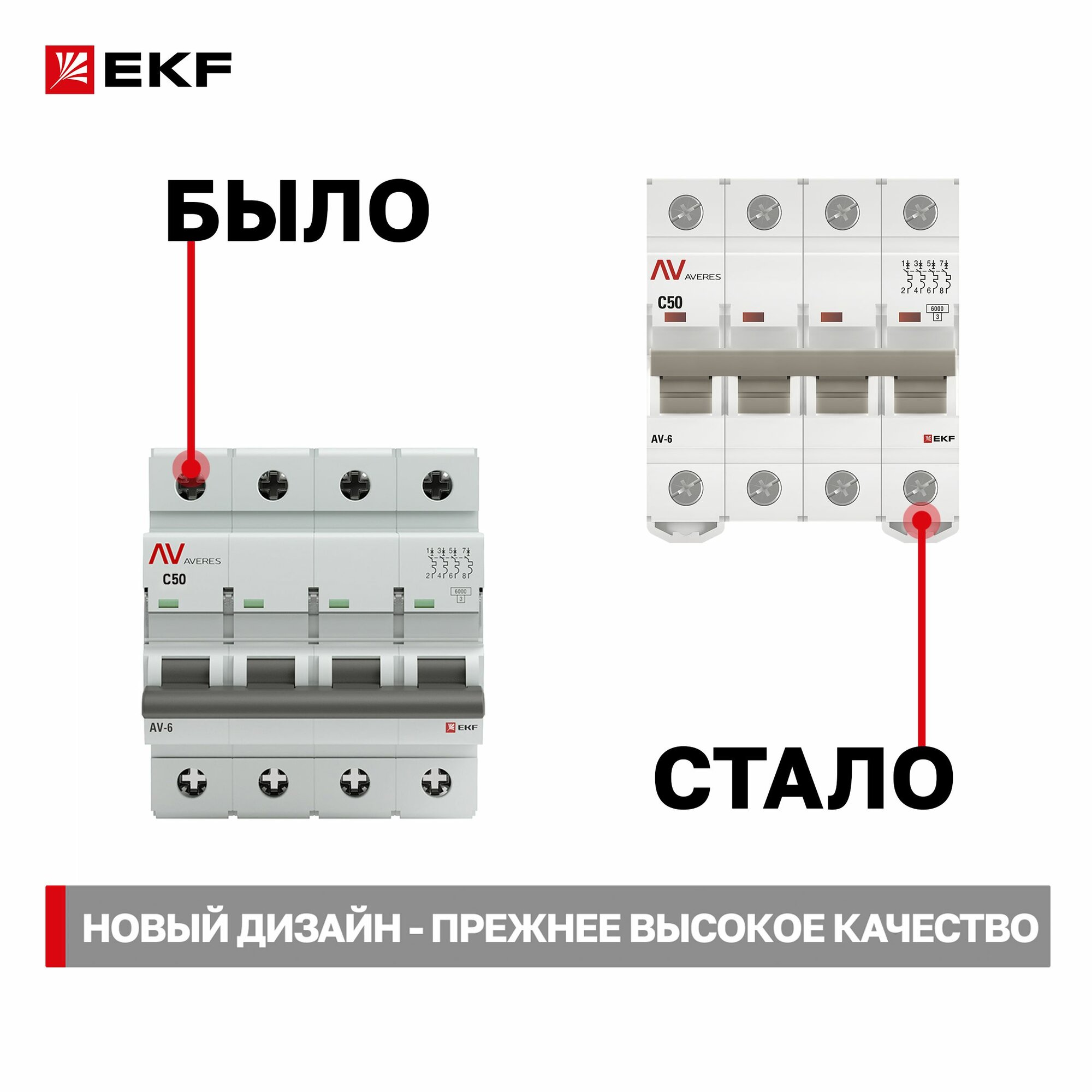 Отзывы на Автомат 50A, тип C, четырёхполюсный 4P, 6kA, EKF AVERES (Автоматический выключатель C50)