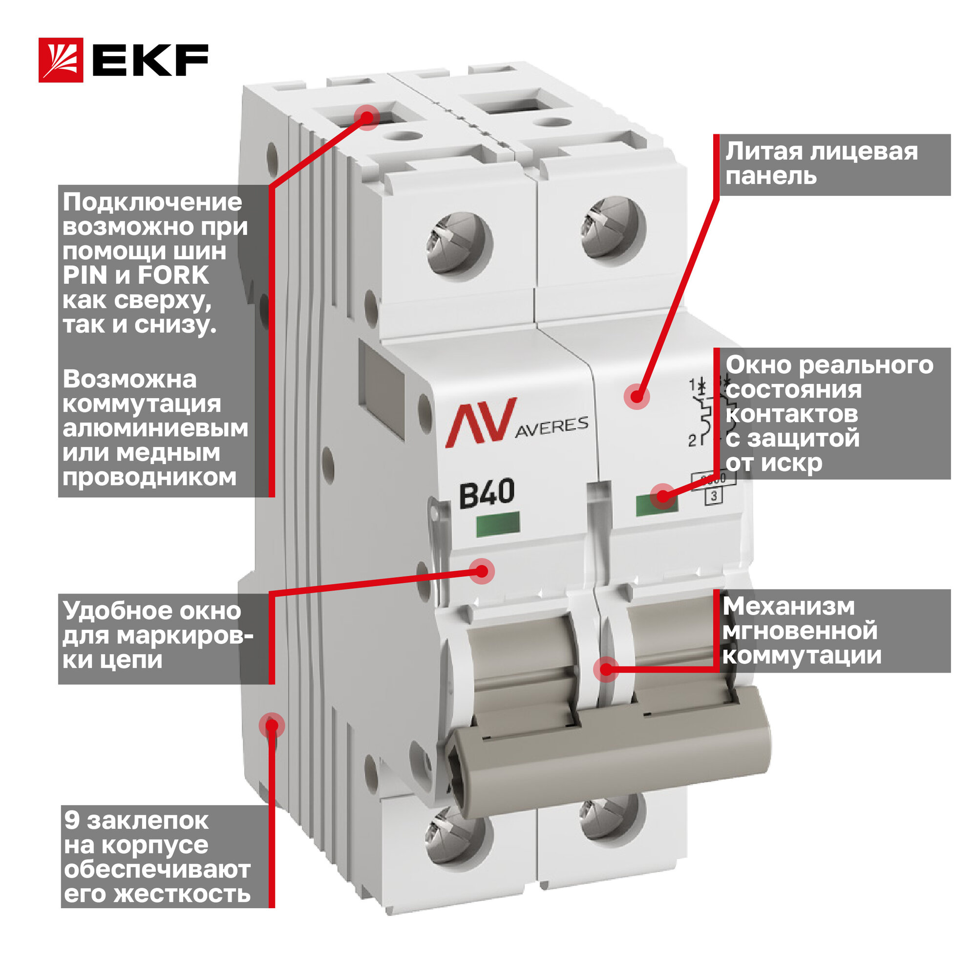 Выключатель автоматический EKF AVERES AV-10 2P 40A (B) 10kA - 1шт. информация: