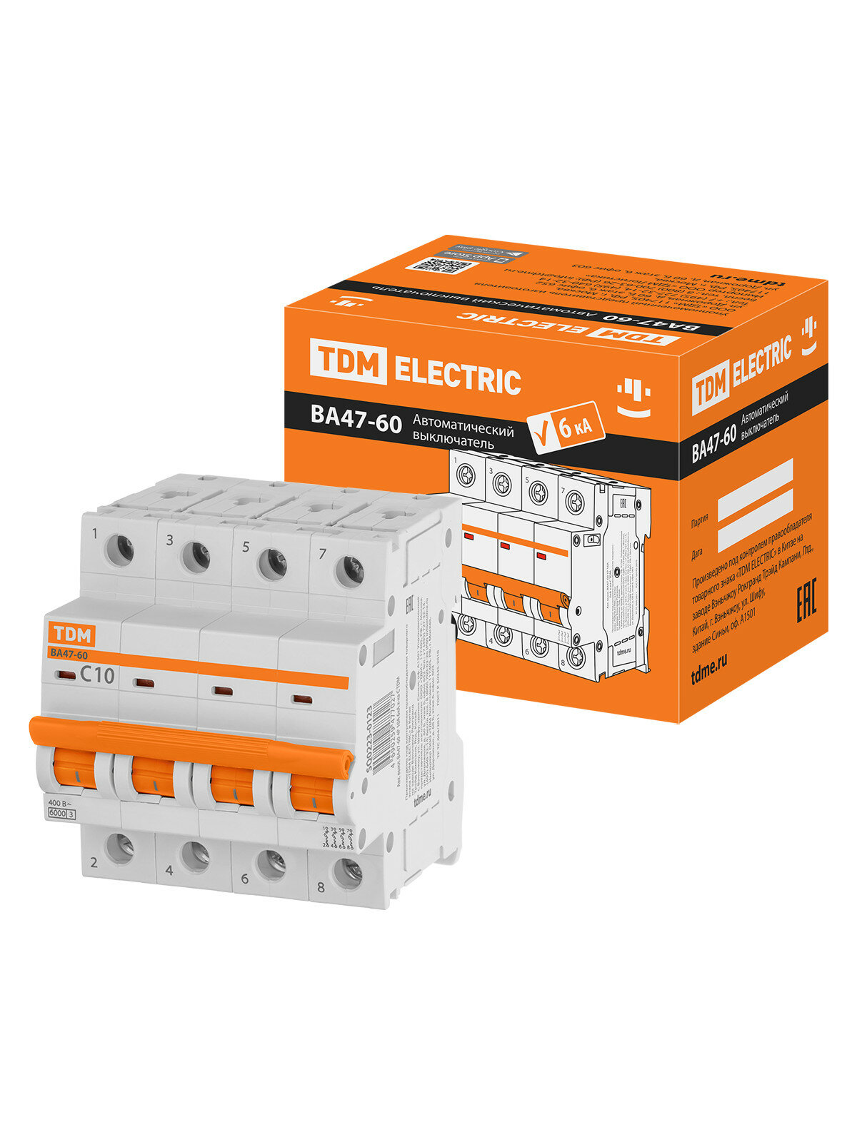 Автоматический выключатель ВА47-60 4Р 10А 6 кА тип С TDM Electric информация: