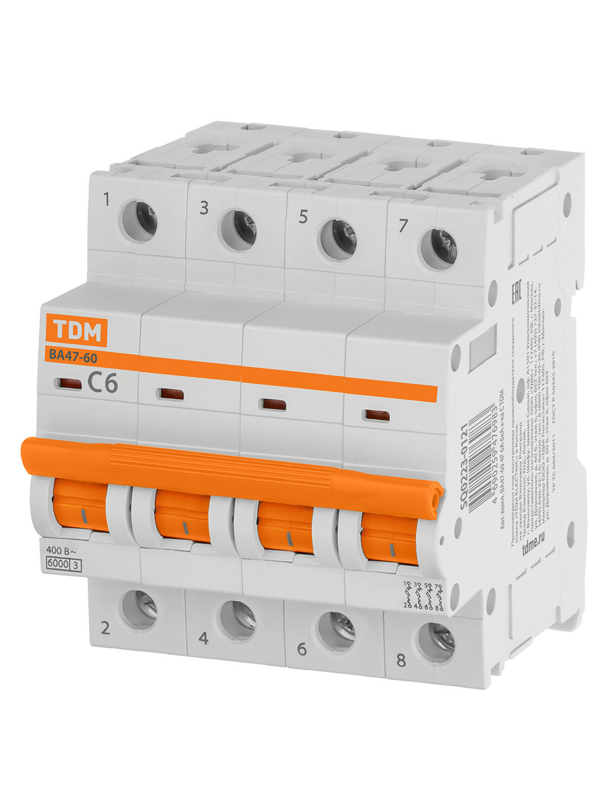 Автоматический выключатель ВА47-60 4Р 6А 6 кА тип С TDM Electric информация: