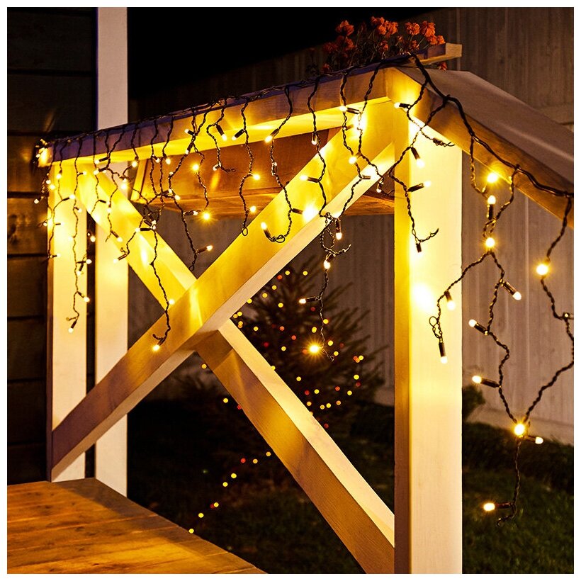 Отзывы на Светодиодная гирлянда "Бахрома" NEON-NIGHT 2.4х0.6 м, 88 тепло-белых светодиодов, постоянное свечение, черный провод