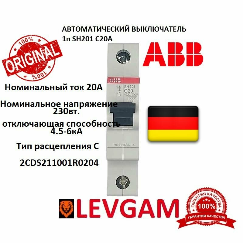 Автоматический выключатель ABB 1Р SH201 С20А информация: