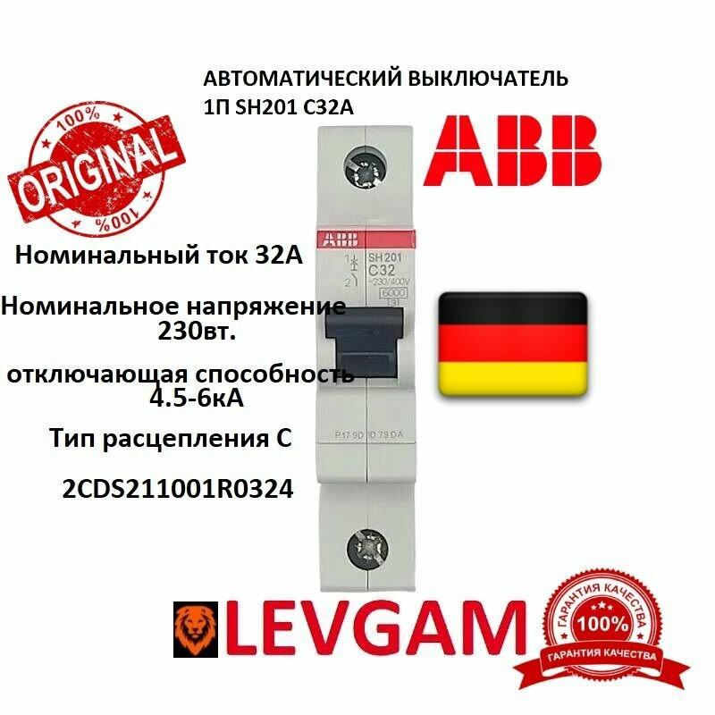 Автоматический выключатель ABB 1Р SH201 С32А информация: