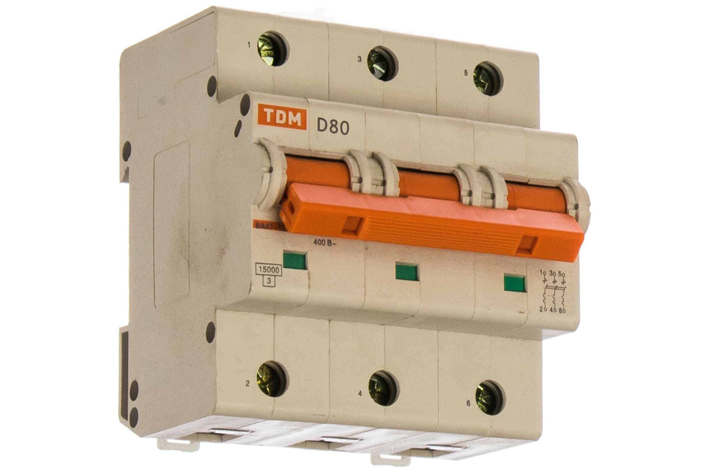 10 цен на Автоматический выключатель Tdm Electric ВА47-125 3Р 80А 15кА х-ка D (SQ0208-0034)