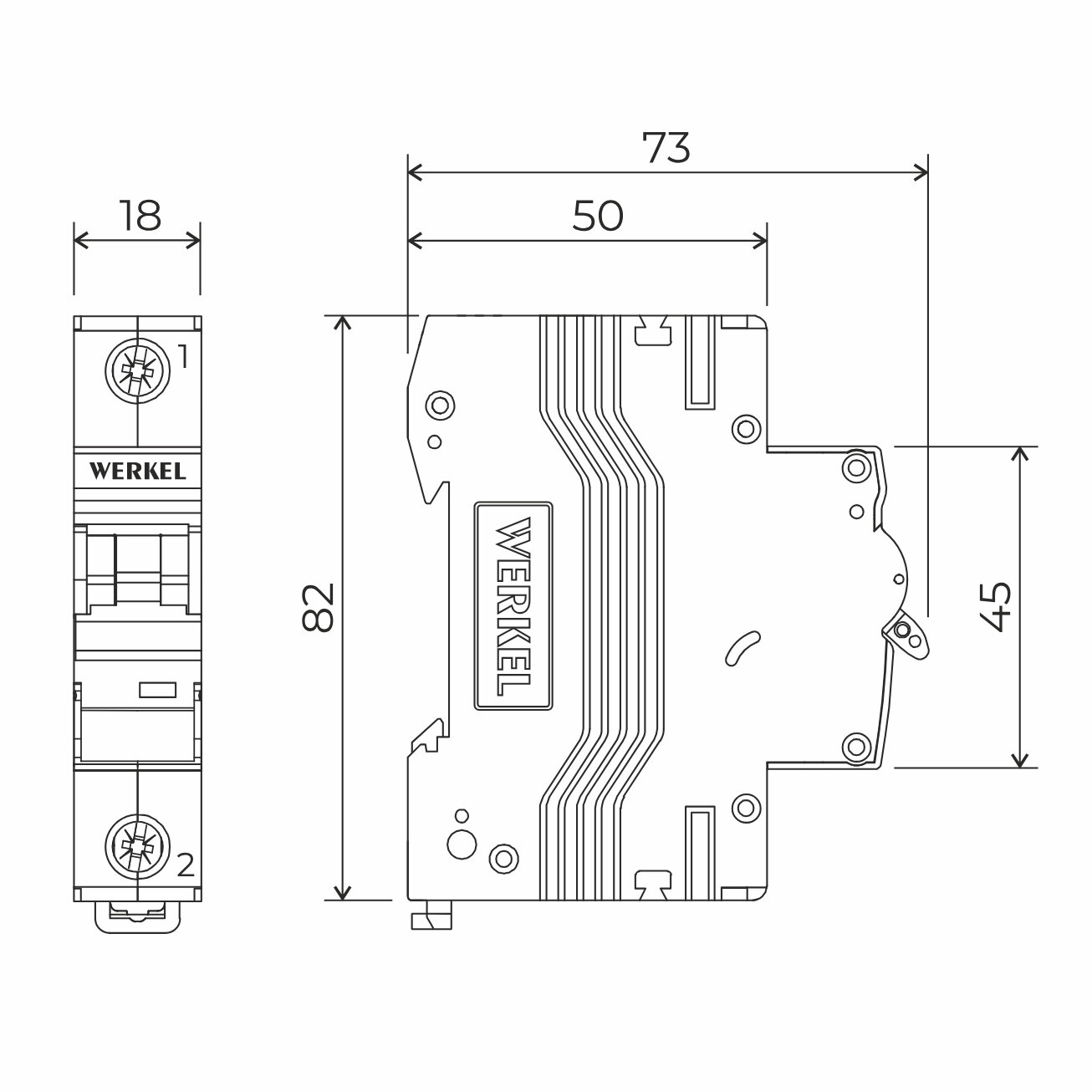 Автоматический выключатель 1P Werkel W901P506, 50 A, ВТХ C, 6 кА - комплект 2 шт. 1 016 ₽
