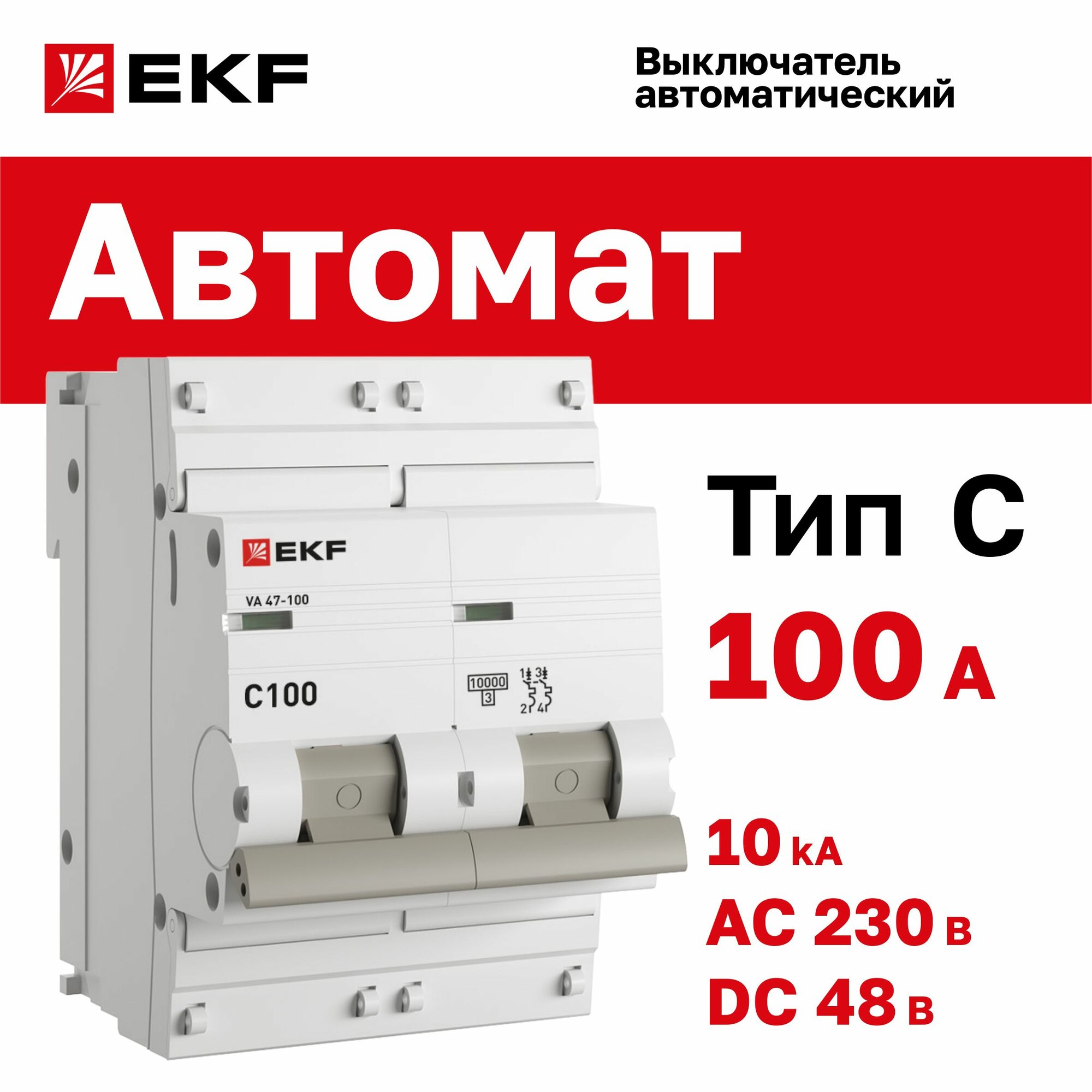 Отзывы на Автомат 100А, тип C, двухполюсный 2P, 10kA, cо встроенной опломбировкой клемм EKF PROxima ВА 47-100 (Автоматический выключатель C100)