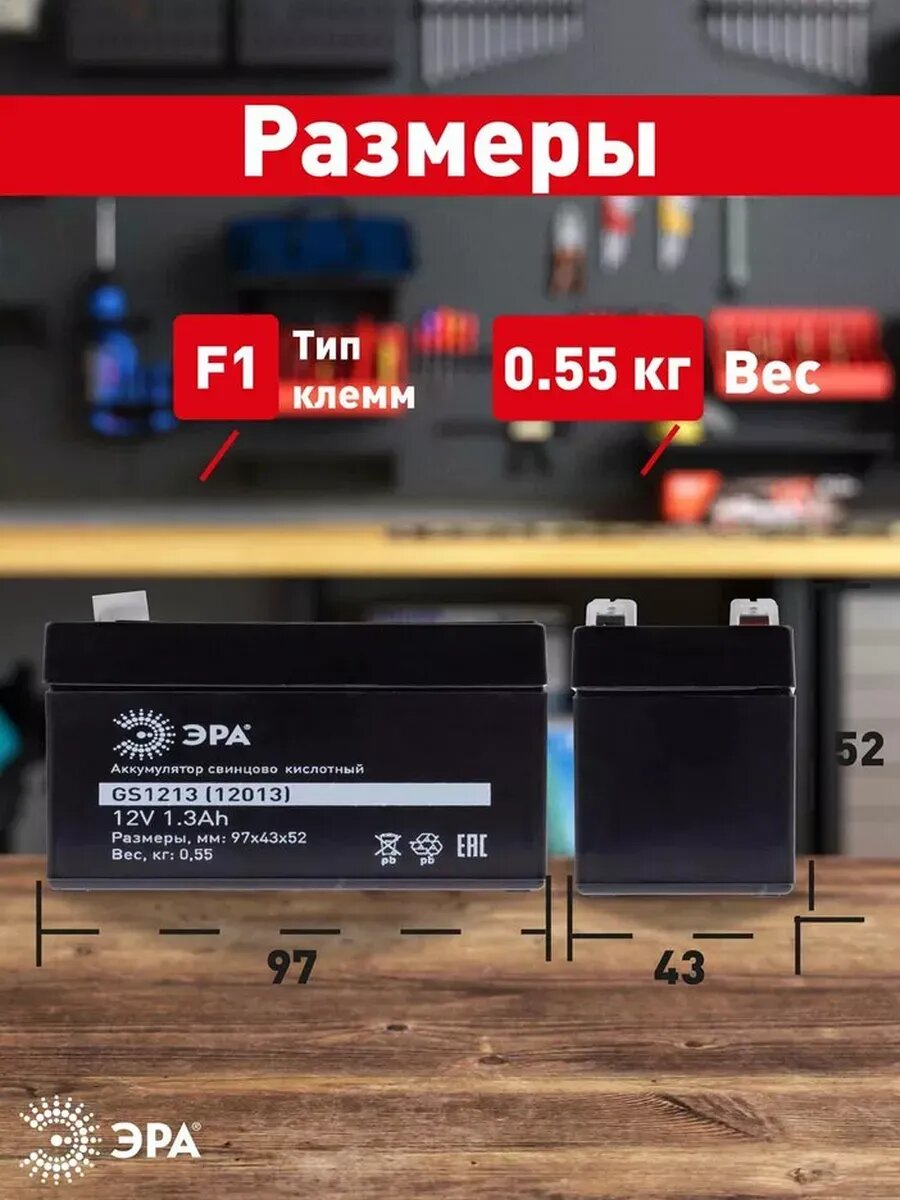 Аккумулятор ЭРА GS1213, для ИБП, свинцово-кислотный, 12В, 1.3Ач информация: