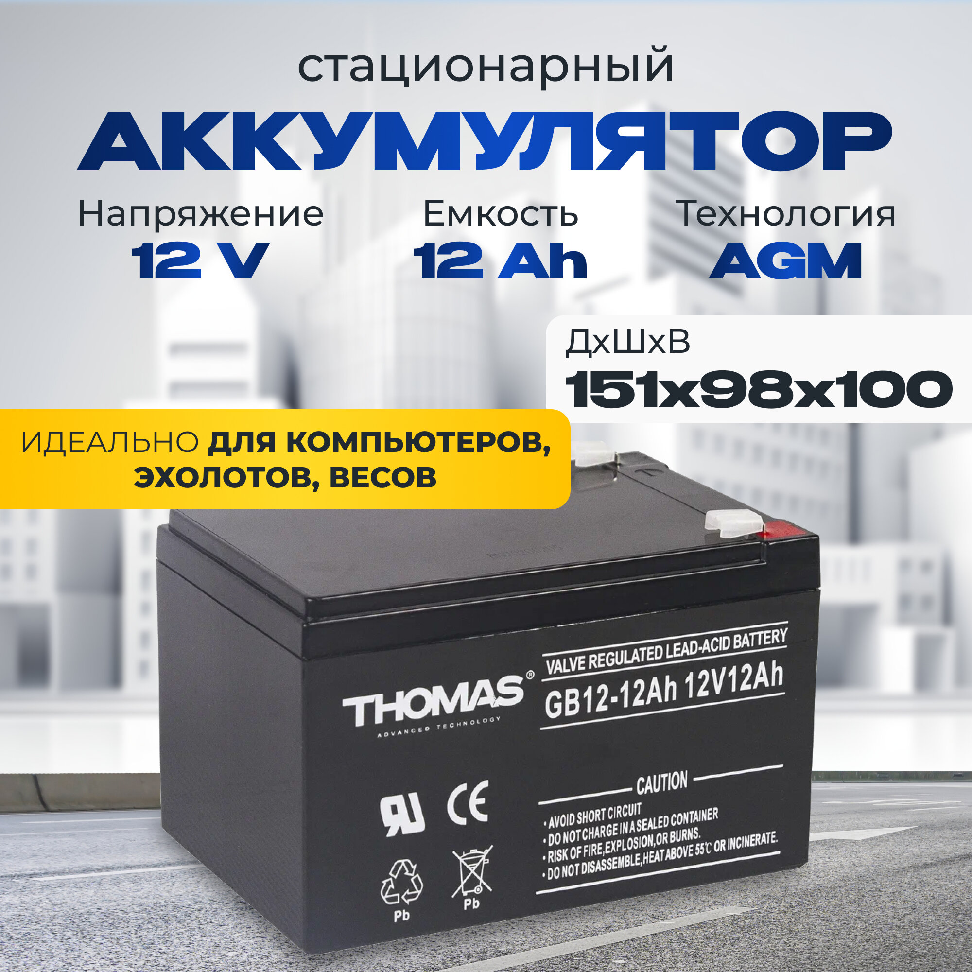 Аккумулятор для ибп 12v 12 Ah THOMAS AGM F2/T2 акб эхолота, фонаря, весов 151x98x100 мм информация: