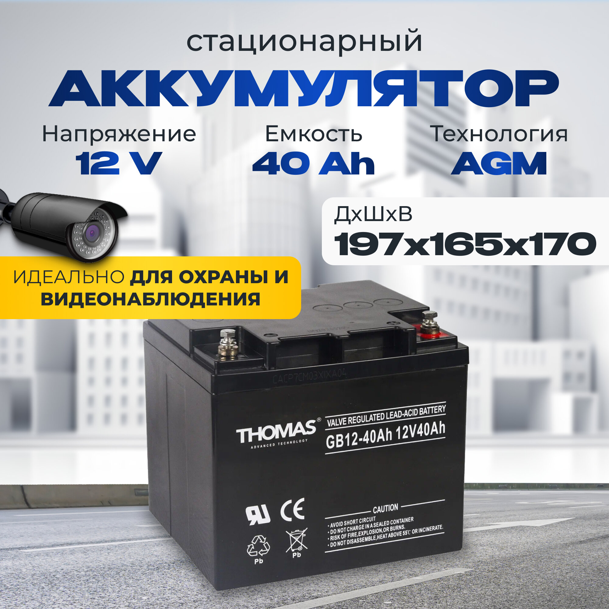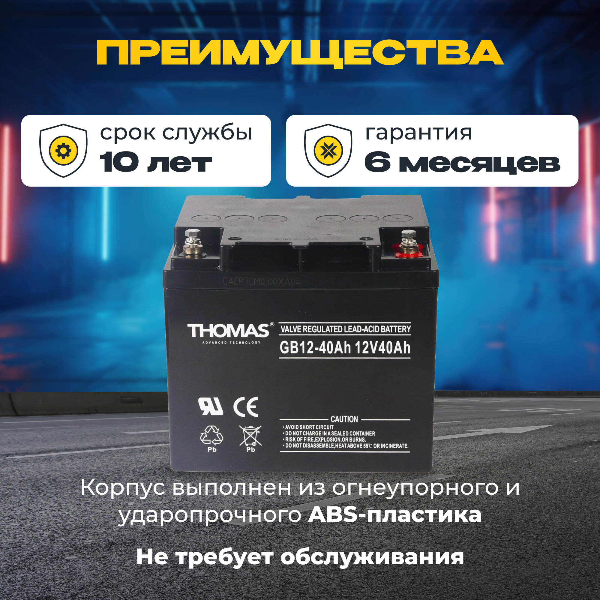 Аккумулятор для ибп 12v 40Ah THOMAS AGM M6/T14 акб котлов и насосов отопления 197x165x170 мм информация: