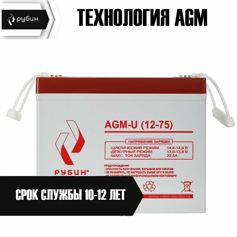 Аккумулятор батарея 12В 75 Ач (12V 75Ah), аккумулятор для бесперебойника, АКБ, для ИБП, AGM информация: