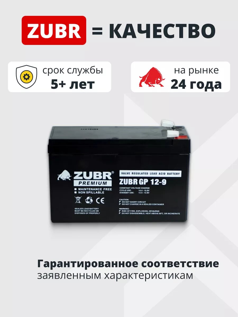 Аккумулятор для ибп 12v 9Ah ZUBR AGM F2 на бесперебойник для дома информация: