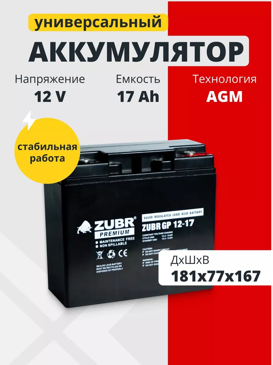 10 цен на Аккумулятор для ибп 12v 17 Ah ZUBR AGM M5/T3 котла, весов, компьютера