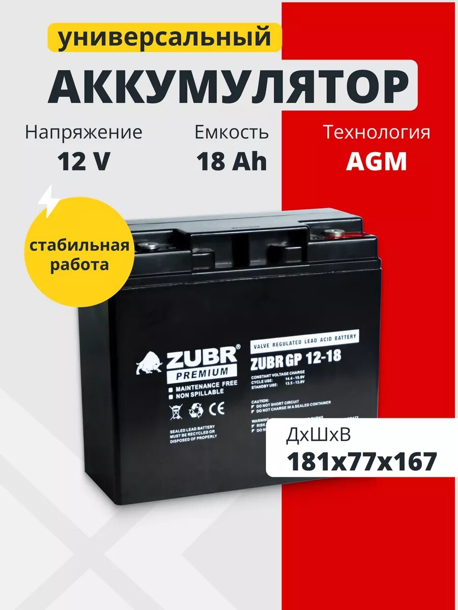 10 цен на Аккумулятор для ибп 12v 18 Ah ZUBR AGM M5/T3 котла, весов, компьютера