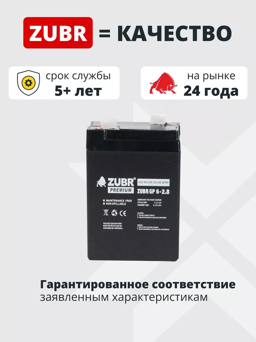10 цен на Аккумулятор 6v 2.8 Ah ZUBR F1/T1 AGM для кассы, фонаря, весов