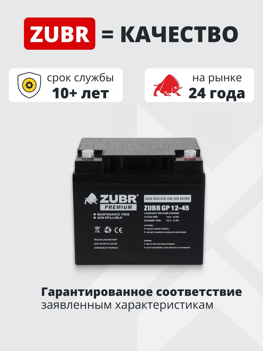 Аккумулятор ибп 12v 45Ah ZUBR AGM M6/T14 на бесперейник компьютера информация:
