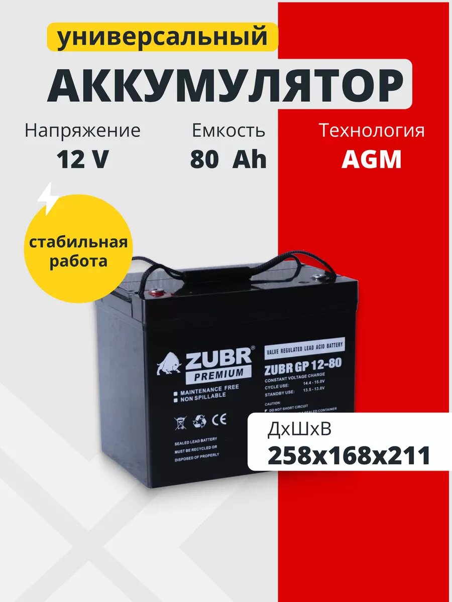 10 цен на Аккумулятор ибп 12v 80 Ah ZUBR AGM M8 котлов, поломоечных машин