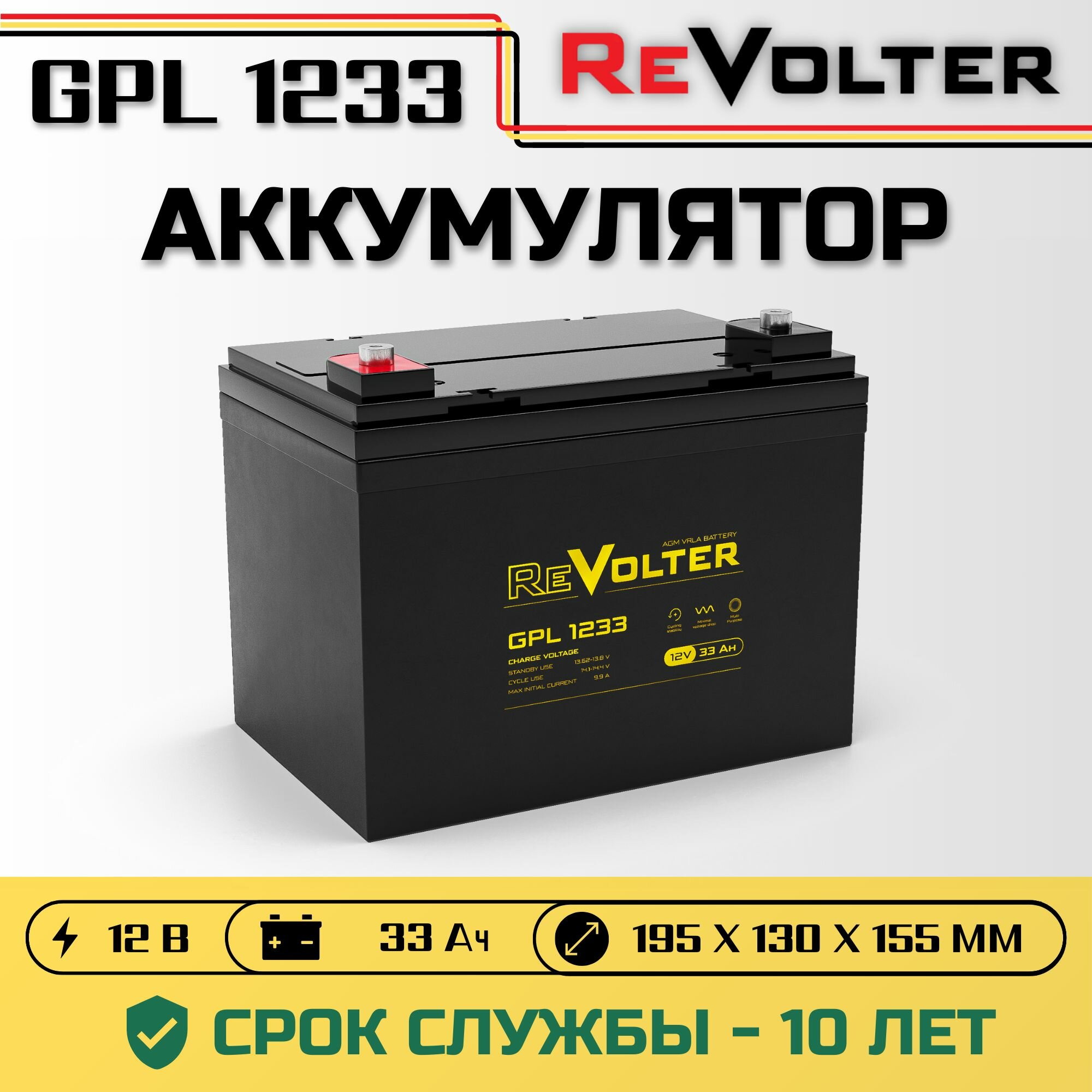 10 цен на Аккумуляторная батарея REVOLTER GPL 1233 12В, емкость 33Ач, клемма Болт М6 (196х130х155мм (156мм)