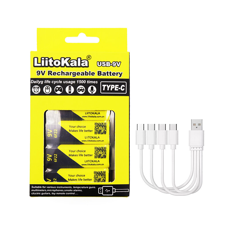 10 цен на LiitoKala USB-9V 1100mAh Литий-ионный аккумулятор*4шт + кабель для зарядки 1 tow 4 Type-C*1шт