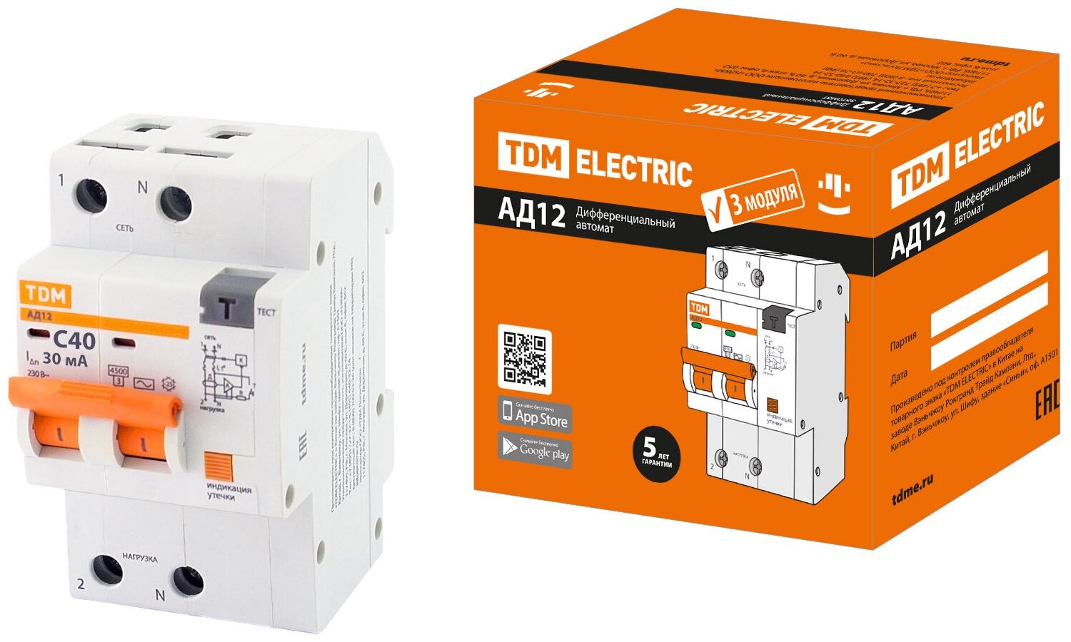 Автоматический выключатель дифференциального тока TDM АД12 2P 40 A 30 мA информация: