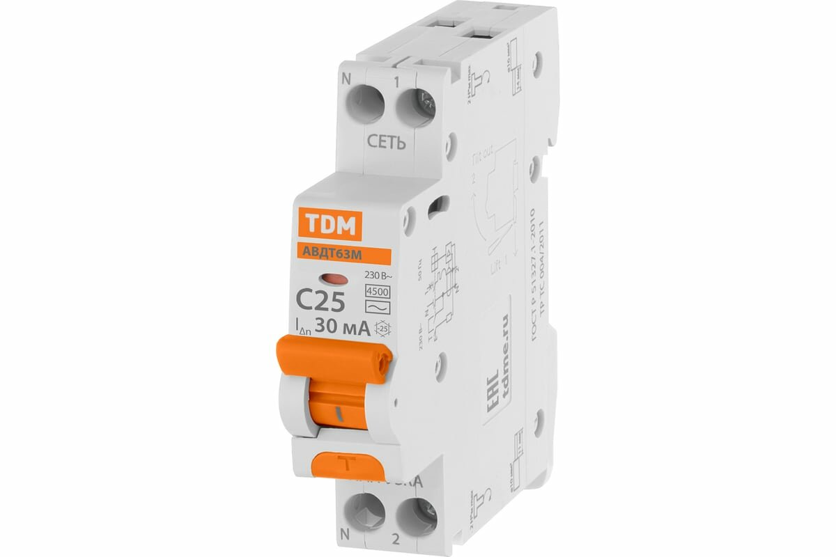 Отзывы на Автоматический выключатель дифференциального тока TDM 63М 2P1P+N C25 30мА 4,5кА тип АС SQ0202-0062