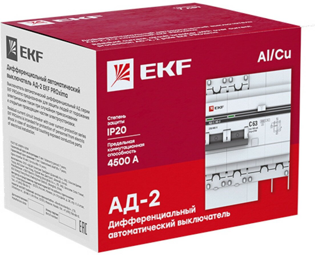 Дифференциальный автомат АД-2 S 40А-100мА (хар. C, AC, электронный) 4,5кА EKF PROxima информация: