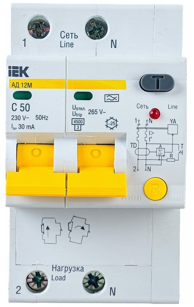 Отзывы на Дифференциальный автомат IEK АД 12М 2П 30 мА C 4.5 кА A электромеханический