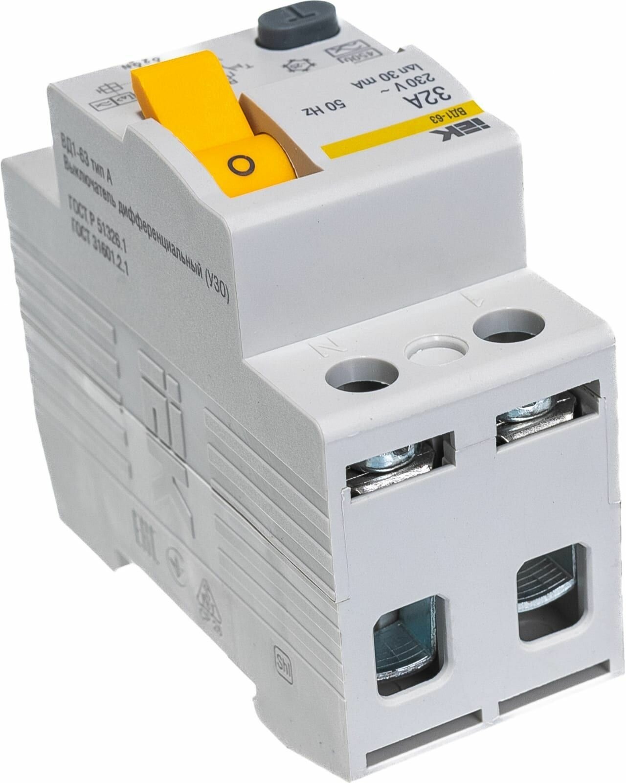 Выключатель дифференциального тока IEK ВД1-63 2П 32А 30мА тип A, MDV11-2-032-030 информация: