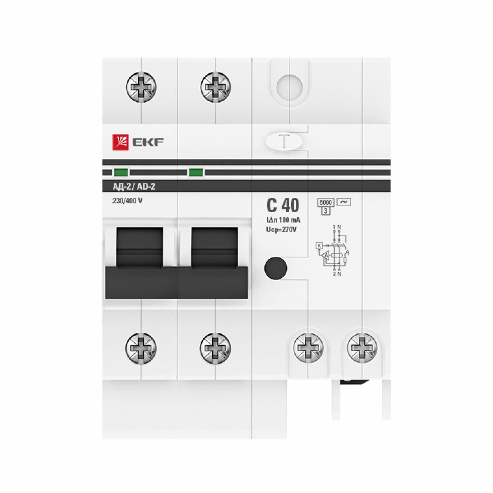 Отзывы на Дифференциальный автомат АД-2 40А-100мА (характеристика C, электронный, тип AC, защита 270В) 6кА, EKF PROxima