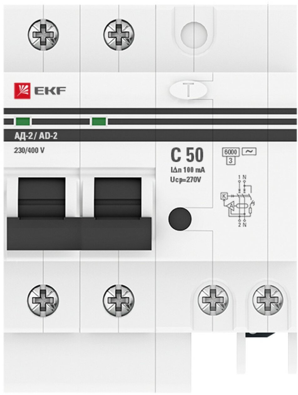 Дифференциальный автомат АД-2 50А-100мА (хар. C, AC, электронный) 6кА EKF PROxima информация:
