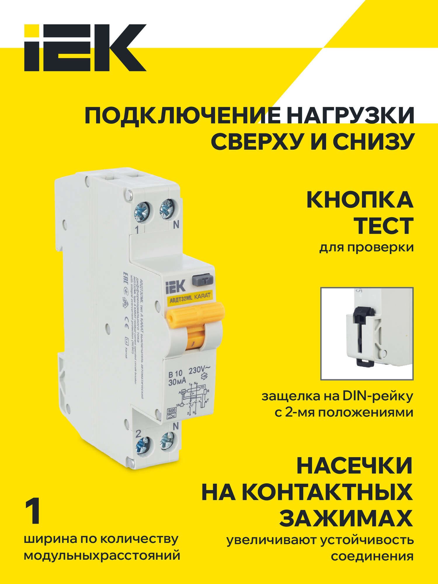Выключатель автоматический дифференциального тока АВДТ32ML тип A В10 30мА KARAT IEK информация: