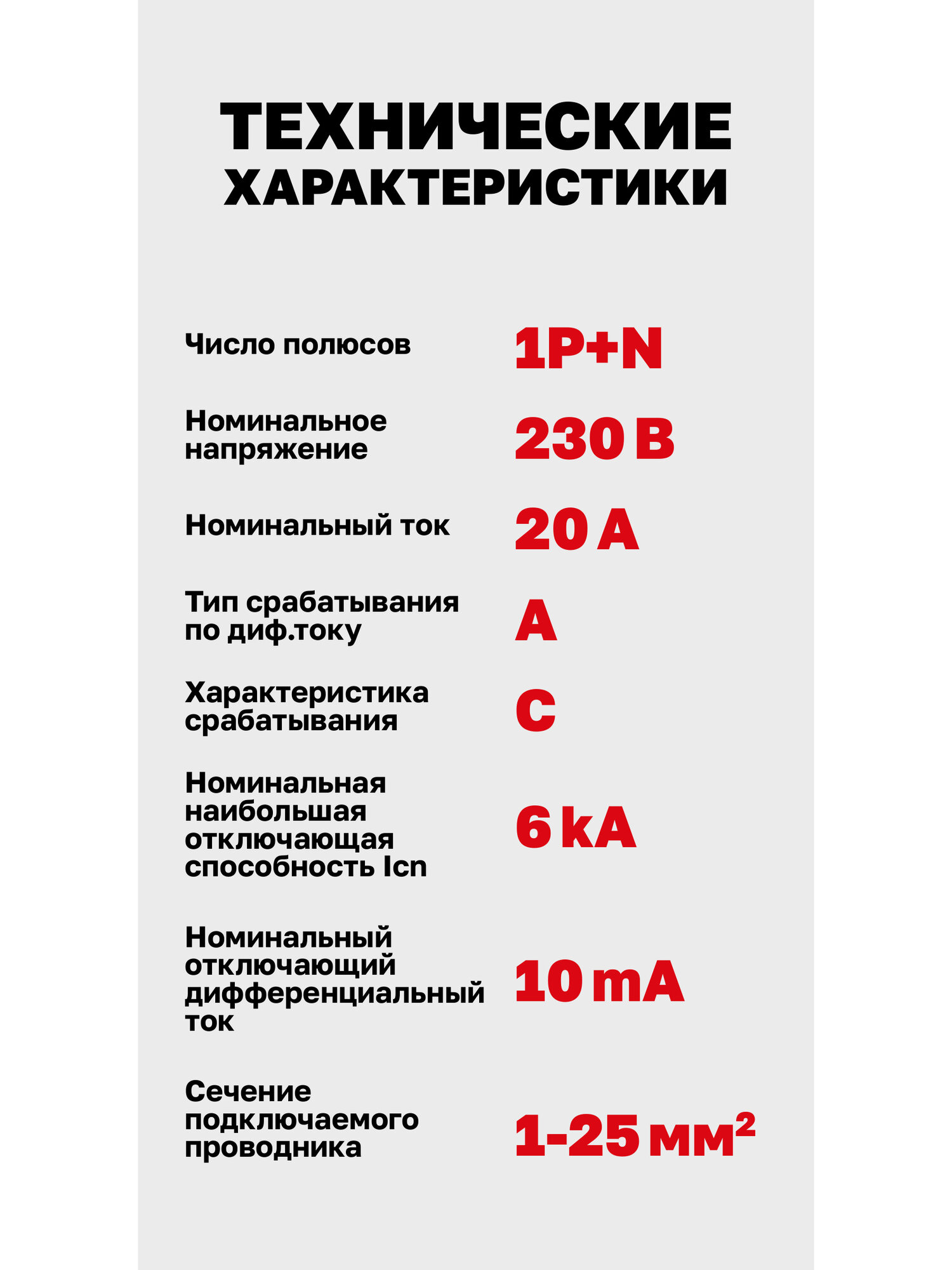 Отзывы на Дифавтомат 20А (C) 10мА, тип A, 1P+N (двухполюсный), 6кА, электромеханический АВДТ-63N EKF PROXIMA - Автоматический выключатель дифференциального тока