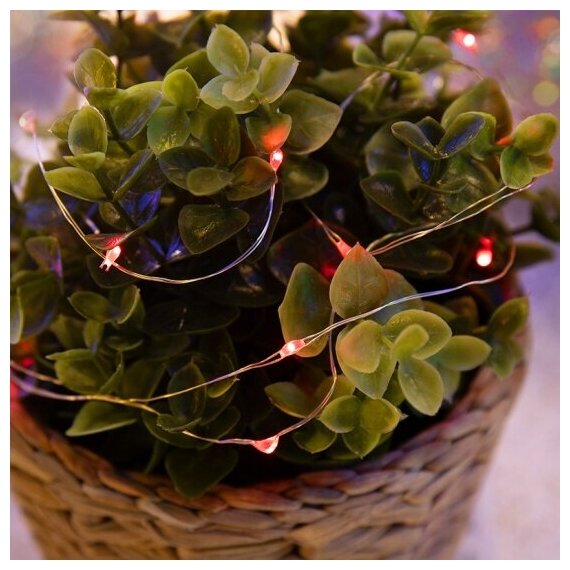 10 цен на Светодиодная влагозащищенная гирлянда "Роса" гибкой формы 2 м, 20 LED, 4.5 В, цвет: Красный
