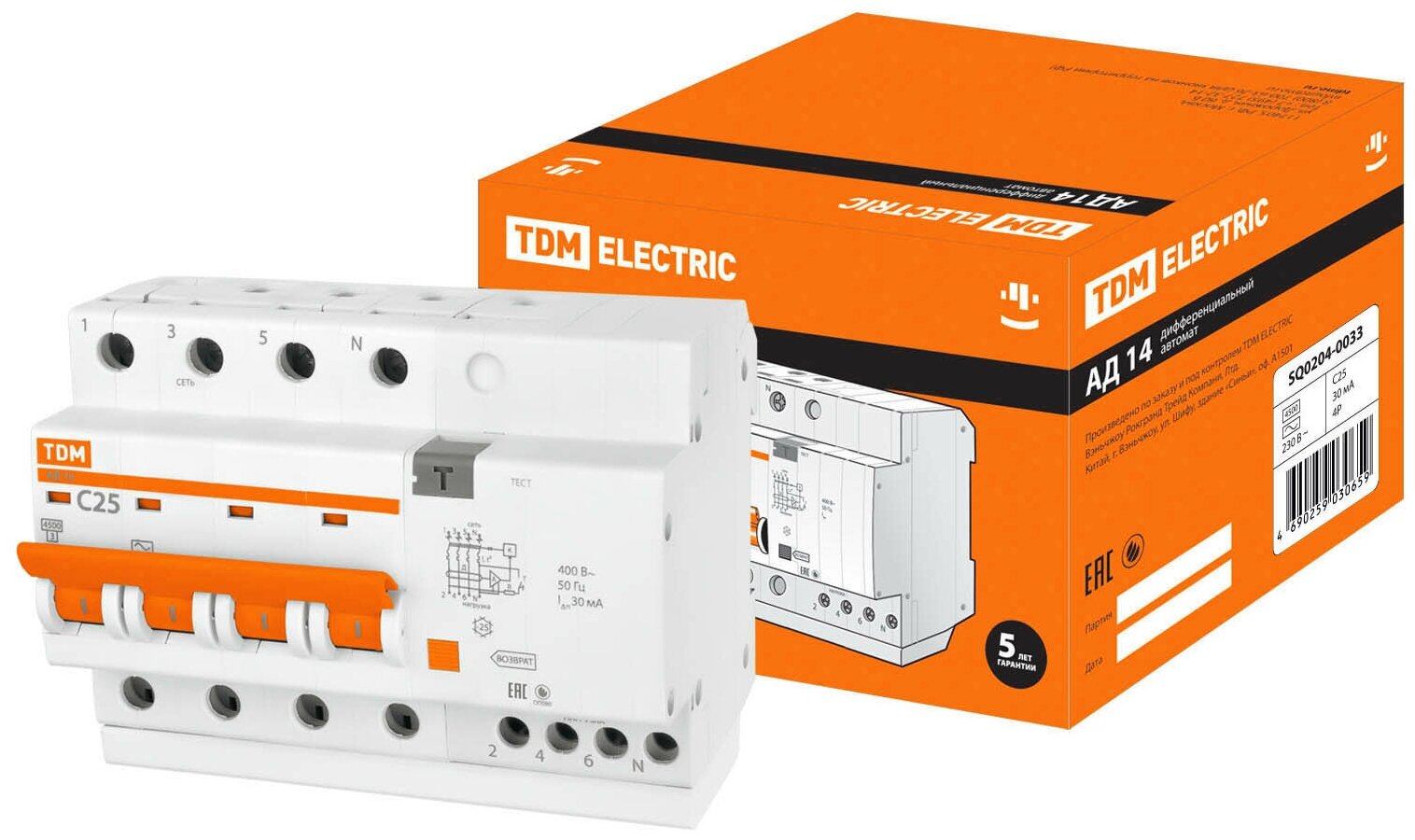 Отзывы на Дифференциальнай автомат АД14 4Р 25А 300мА TDM SQ0204-0135 (1 шт.)