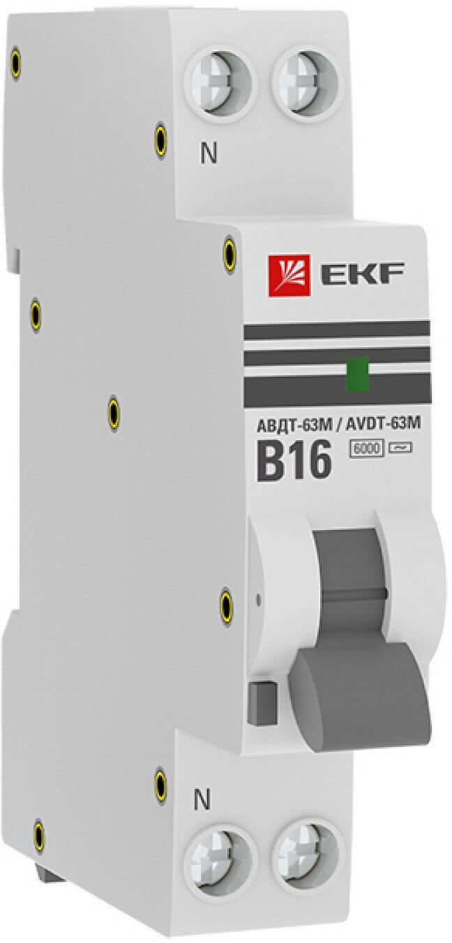 Отзывы на Автоматический выключатель дифференциального тока АВДТ-63M 1P-N (18мм) 16А 30мА характеристика B тип AС электронный 6кА PROXIMA EKF