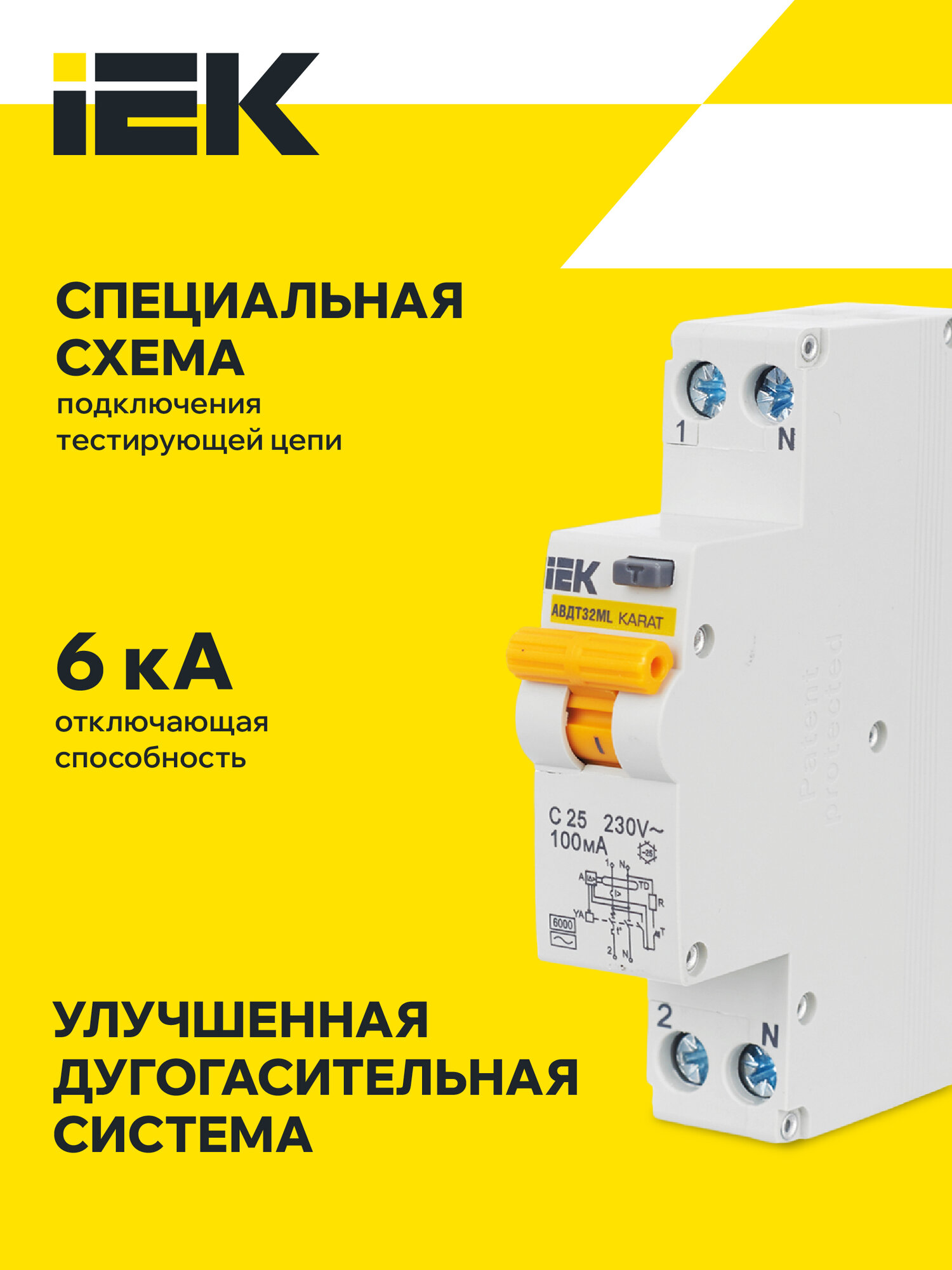 Выключатель автоматический дифференциального тока АВДТ32МL C25 100мА KARAT IEK информация:
