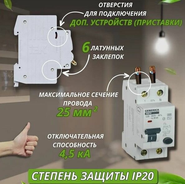 Автоматический выключатель дифференциального тока GENERICA АВДТ 32 C 25A 2шт информация: