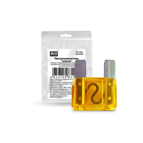 Предохранитель AVS "макси", автомобильный, флажковый, 40A, 1шт. информация:
