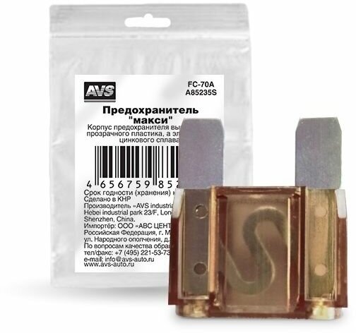 Предохранитель автомобильный AVS Макси FC-70A, флажковый, 70 A, в пакете информация: