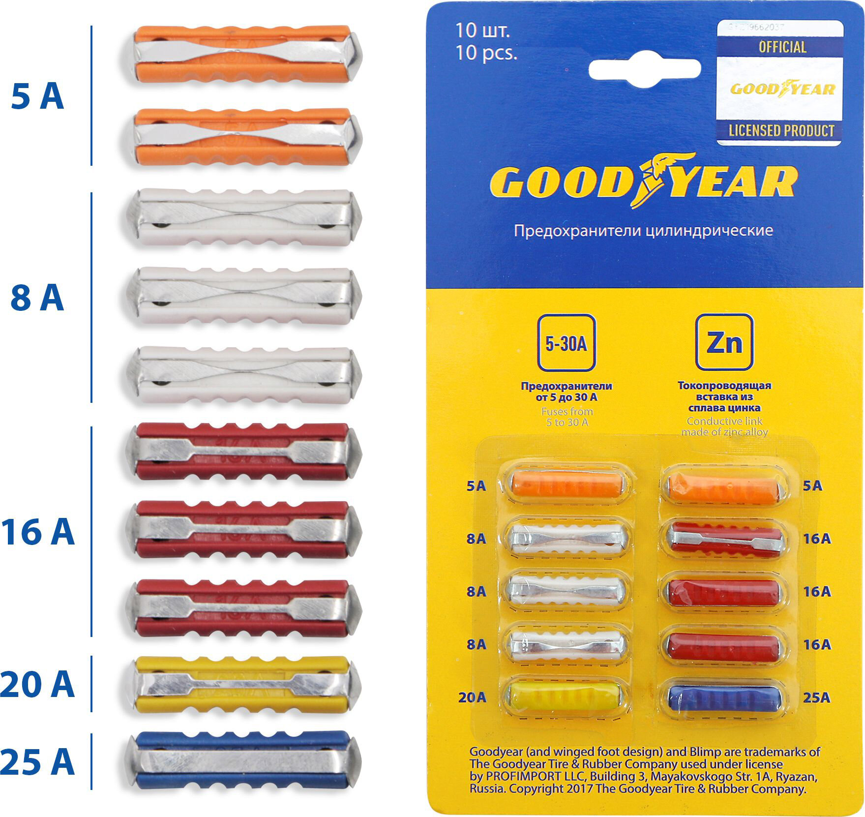 Предохранитель цилиндр GOODYEAR 5-25 А 10 шт. информация: