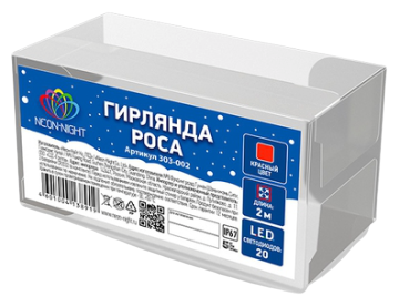 Гирлянда NEON-NIGHT 303-002, 1 шт. в наборе, 2 х 0.04 м, 20 ламп, красный