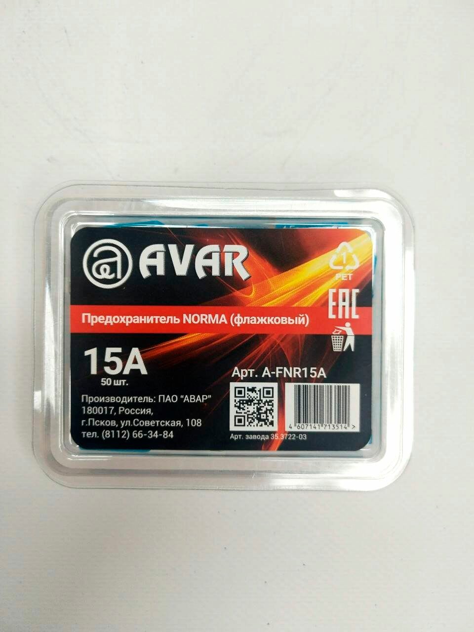 Предохранители АВАР "NORMA", плоские, пластиковые, 15A, 50 шт. информация: